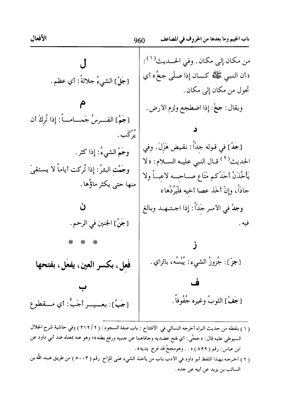 (1) بلفظه من حديث البراء أخرجه النسائي في الافتتاح: باب صفة السجود: (2/ 212) وفي حاشية شرح الجلال السيوطي عليه قال: «جخَّى: أي فتح عضديه وجافاهما عن جنبيه ورفع بطنه»؛ وهو عنه بمعناه عند أبي داود عن ابن عباس: رقم (899) « .. وهو مجخّ قد فرج يديه».