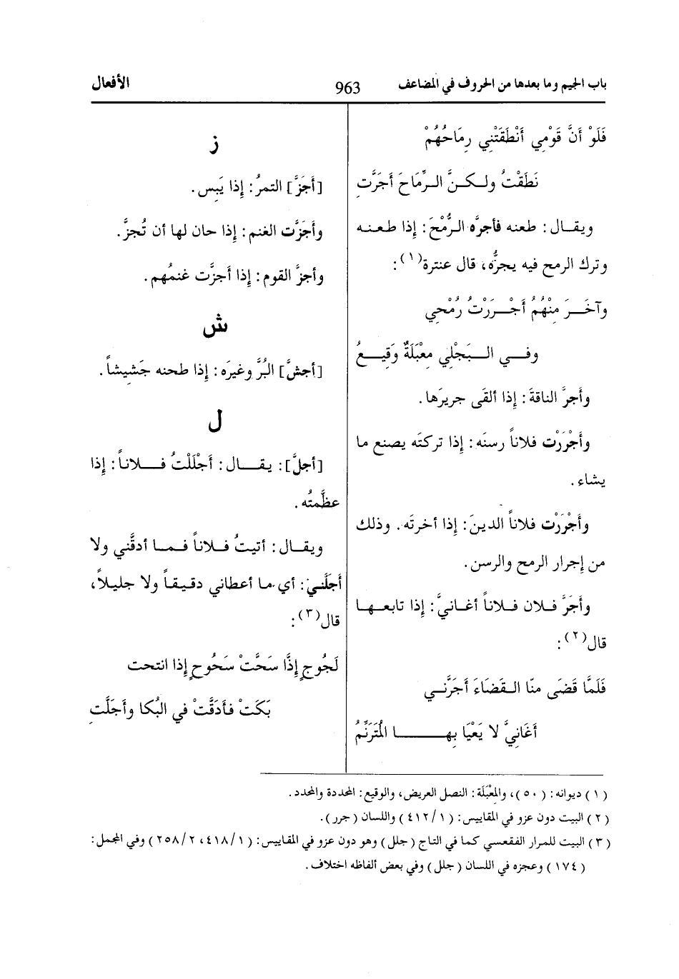 (3) البيت للمرار الفقعسي كما في التاج (جلل) وهو دون عزو في المقاييس: (1/ 418، 2/ 258) وفي المجمل: