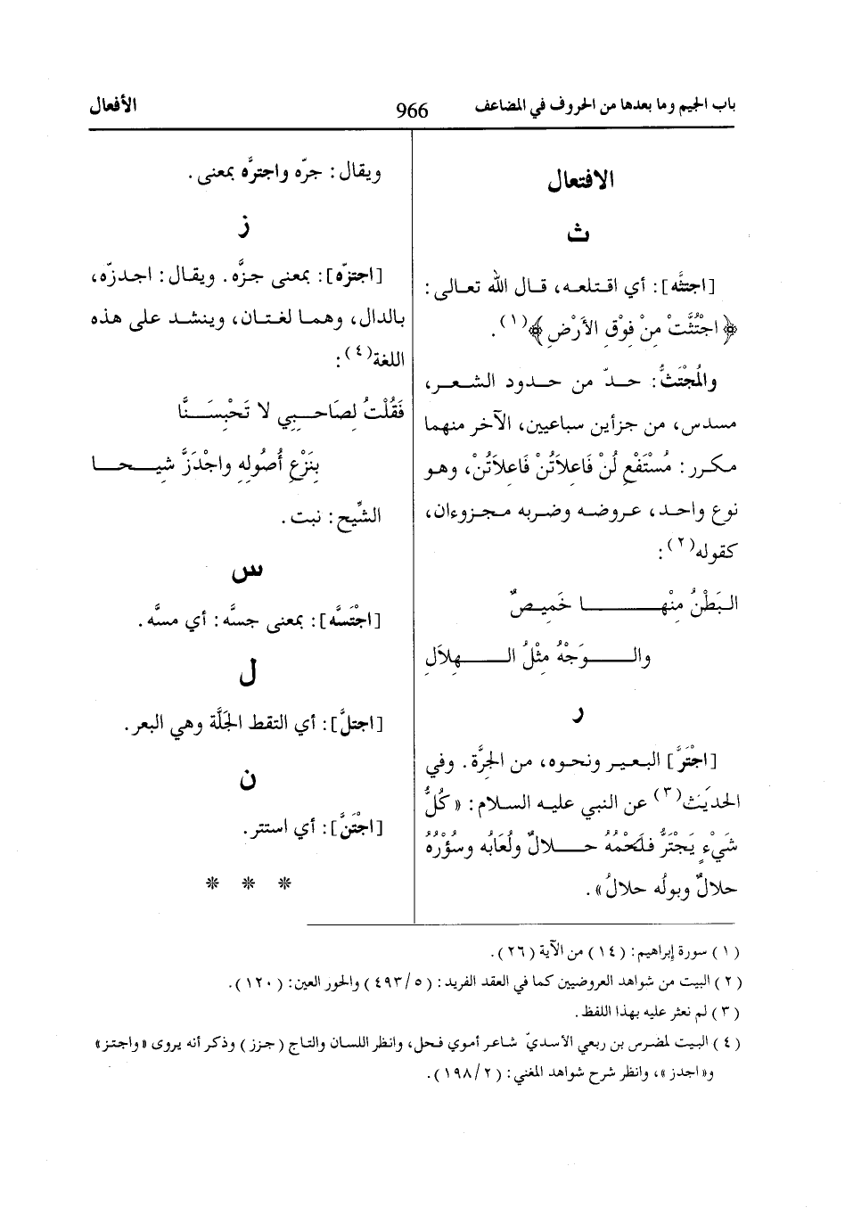 [اجتزّه]: بمعنى جزَّه. ويقال: اجدزّه، بالدال، وهما لغتان، وينشد على هذه اللغة «4»: