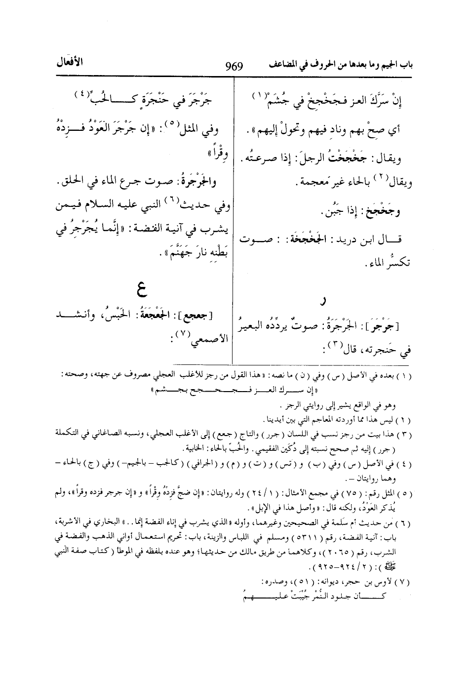 (3) هذا بيت من رجز نسب في اللسان (جرر) والتاج (جعع) إلى الأغلب العجلي، ونسبه الصاغاني في التكملة (جرر) إِليه ثم صحح نسبته إِلى دُكَين الفقيمي. والحُبّ بالحاء: الخابية.