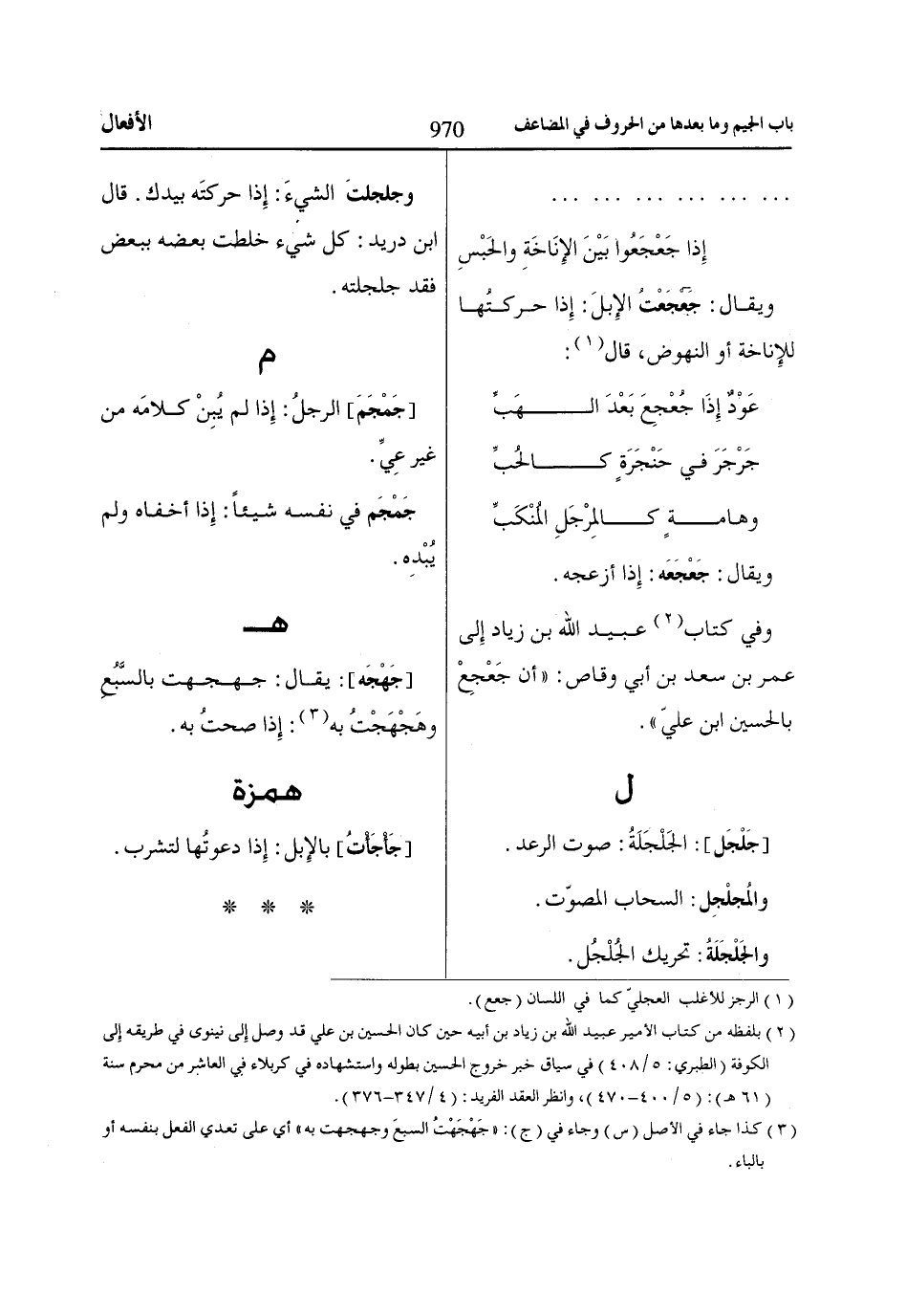 وفي كتاب «2» عبيد اللّاه بن زياد إِلى عمر بن سعد بن أبي وقاص: «أن جَعْجِعْ بالحسين ابن عليّ»