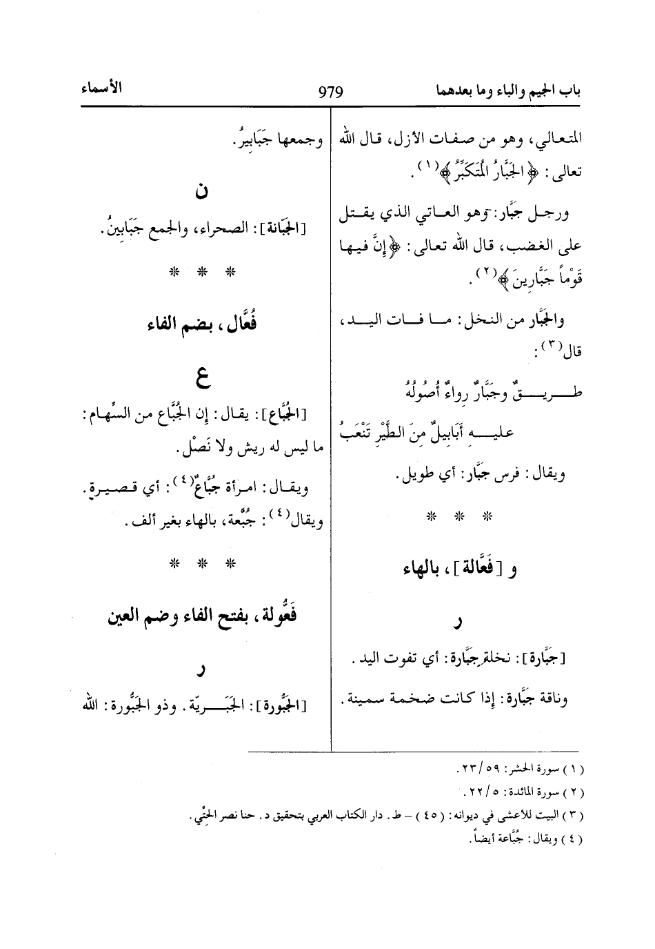 ورجل جَبَّار: وهو العاتي الذي يقتل على الغضب، قال اللّاه تعالى: إِنَّ فِيهاا قَوْماً جَبّاارِينَ «2».