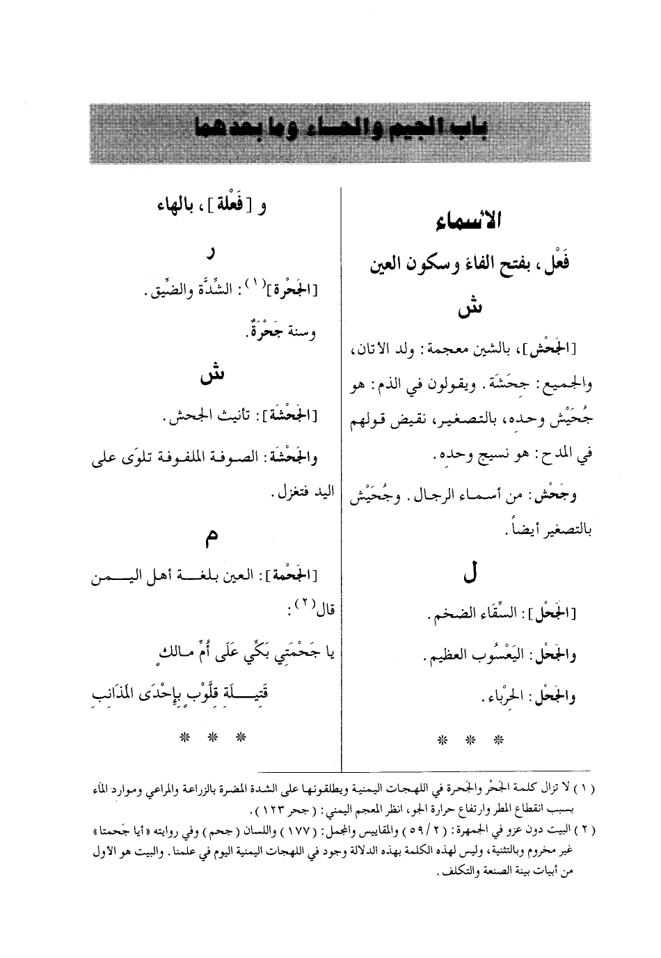 باب الجيم والحاء وما بعدهما