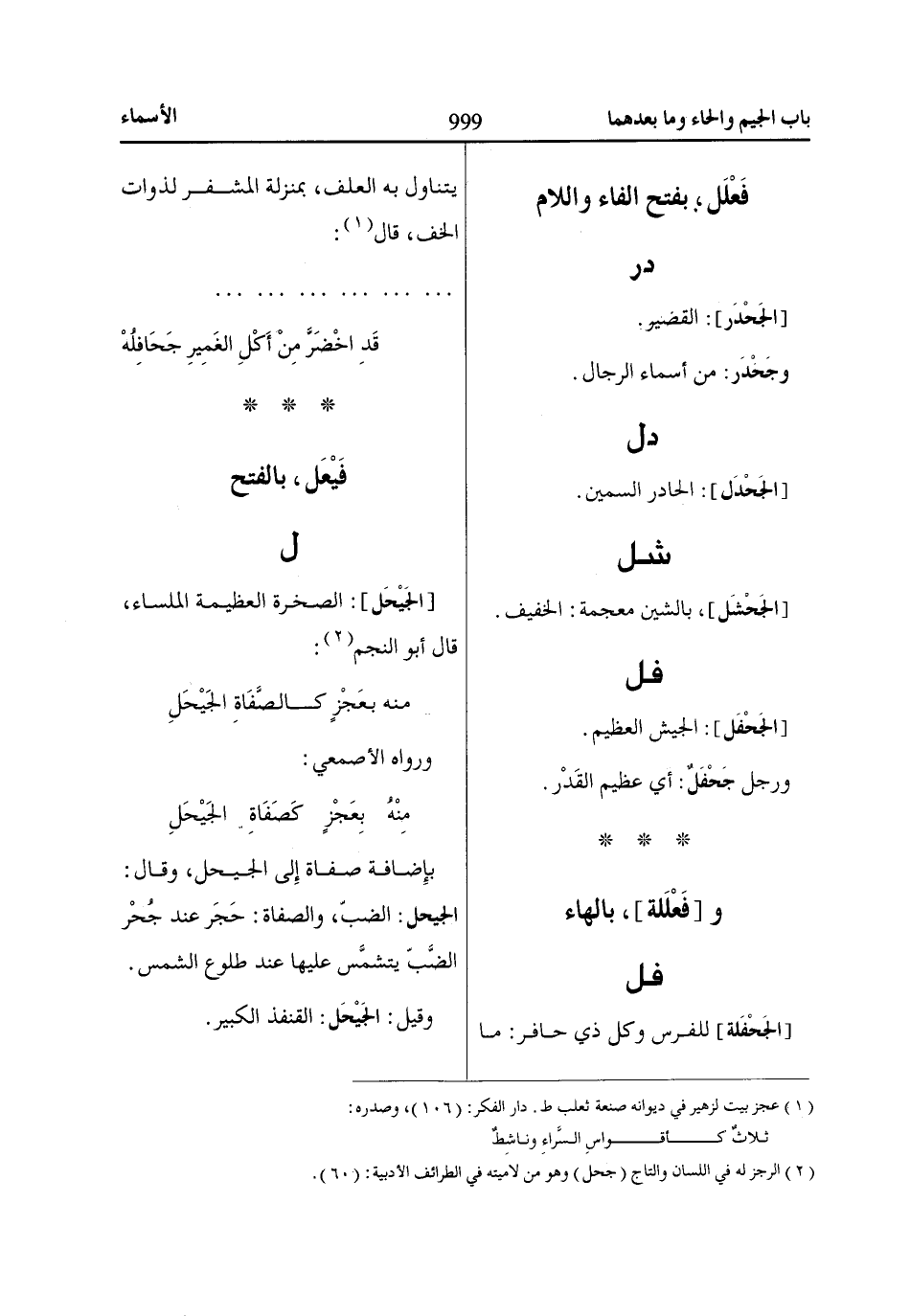 [الجَيْحَل]: الصخرة العظيمة الملساء، قال أبو النجم «2»: