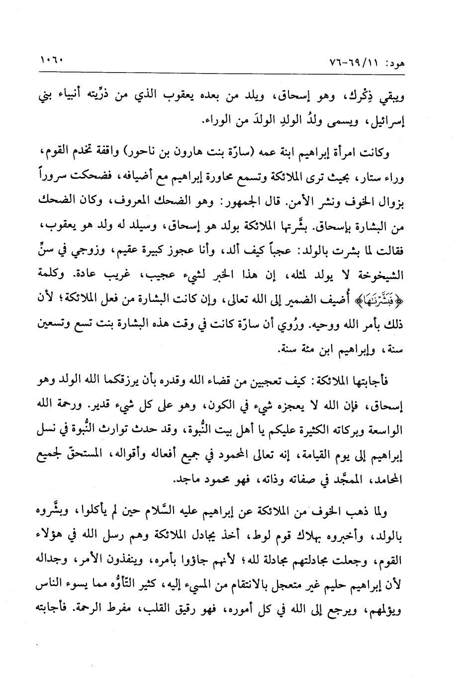 فأجابتها الملائكة: كيف تعجبين من قضاء الله وقدره بأن يرزقكما الله الولد وهو إسحاق، فإن الله لا يعجزه شيء في الكون، وهو على كل شيء قدير. ورحمة الله الواسعة وبركاته الكثيرة عليكم يا أهل بيت النّبوة، وقد حدث توارث النّبوة في نسل إبراهيم إلى يوم القيامة، إنه تعالى المحمود في جميع أفعاله وأقواله، المستحقّ لجميع المحامد، الممجّد في صفاته وذاته، فهو محمود ماجد.