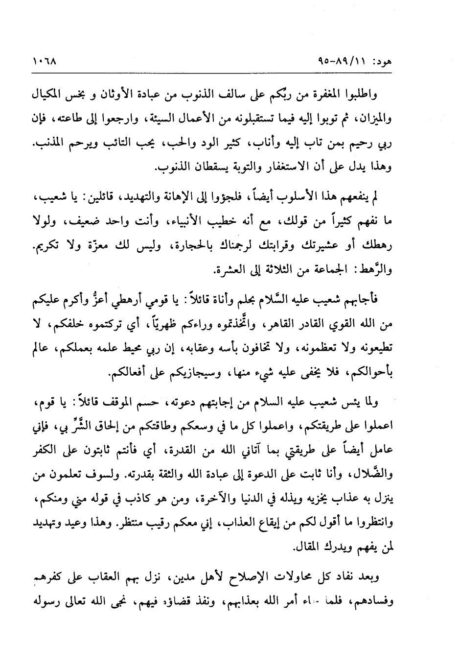 واطلبوا المغفرة من ربّكم على سالف الذنوب من عبادة الأوثان وبخس المكيال والميزان، ثم توبوا إليه فيما تستقبلونه من الأعمال السيئة، وارجعوا إلى طاعته، فإن ربي رحيم بمن تاب إليه وأناب، كثير الود والحب، يحب التائب ويرحم المذنب.