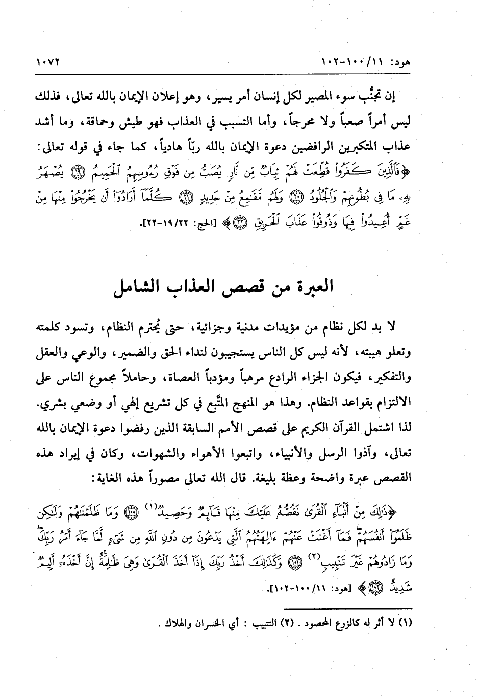 ذلِكَ مِنْ أَنْباءِ الْقُرى نَقُصُّهُ عَلَيْكَ مِنْها قائِمٌ وَحَصِيدٌ (100) وَما ظَلَمْناهُمْ وَلكِنْ ظَلَمُوا أَنْفُسَهُمْ فَما أَغْنَتْ عَنْهُمْ آلِهَتُهُمُ الَّتِي يَدْعُونَ مِنْ دُونِ اللَّهِ مِنْ شَيْءٍ لَمَّا جاءَ أَمْرُ رَبِّكَ وَما زادُوهُمْ غَيْرَ تَتْبِيبٍ (101) وَكَذلِكَ أَخْذُ رَبِّكَ إِذا أَخَذَ الْقُرى وَهِيَ ظالِمَةٌ إِنَّ أَخْذَهُ أَلِيمٌ شَدِيدٌ (102)