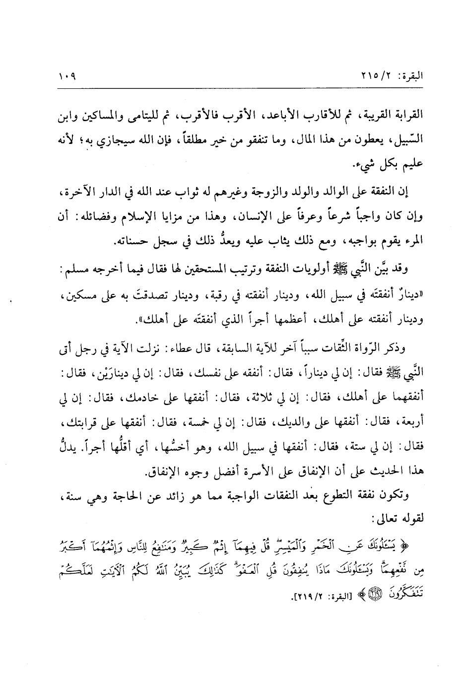 وقد بيّن النّبي صلّى الله عليه وسلّم أولويات النفقة وترتيب المستحقين لها