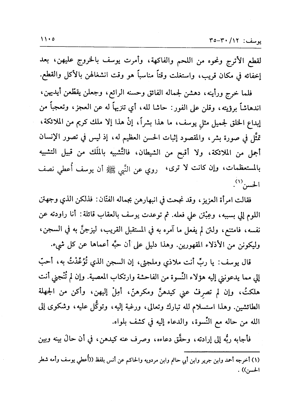 (1) أخرجه أحمد وابن جرير وابن أبي حاتم وابن مردويه والحاكم عن أنس بلفظ «أعطي يوسف وأمه شطر الحسن» .