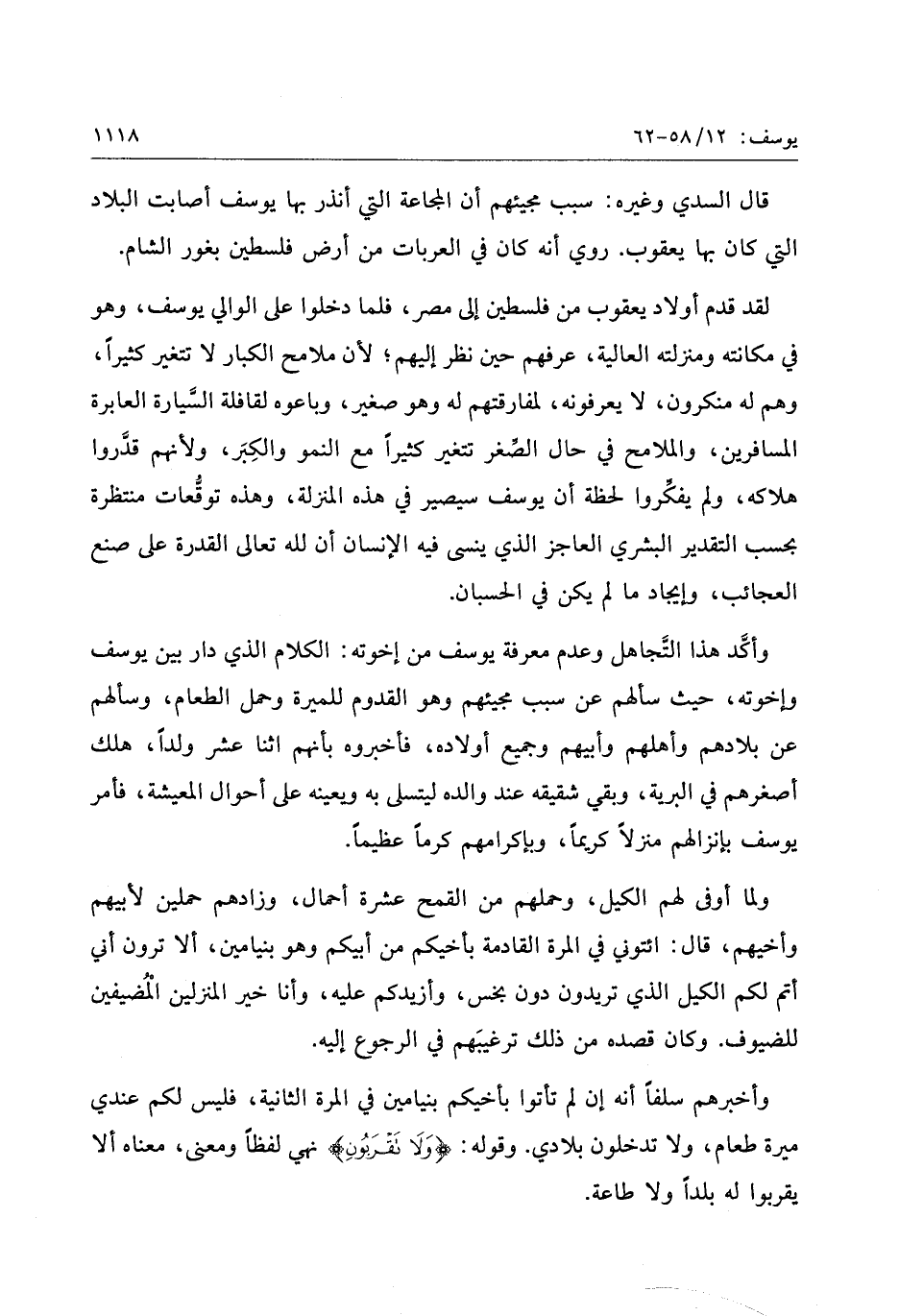 ولما أوفى لهم الكيل، وحملهم من القمح عشرة أحمال، وزادهم حملين لأبيهم وأخيهم، قال: ائتوني في المرة القادمة بأخيكم من أبيكم وهو بنيامين، ألا ترون أني أتم لكم الكيل الذي تريدون دون بخس، وأزيدكم عليه، وأنا خير المنزلين المضيفين للضيوف. وكان قصده من ذلك ترغيبهم في الرجوع إليه.