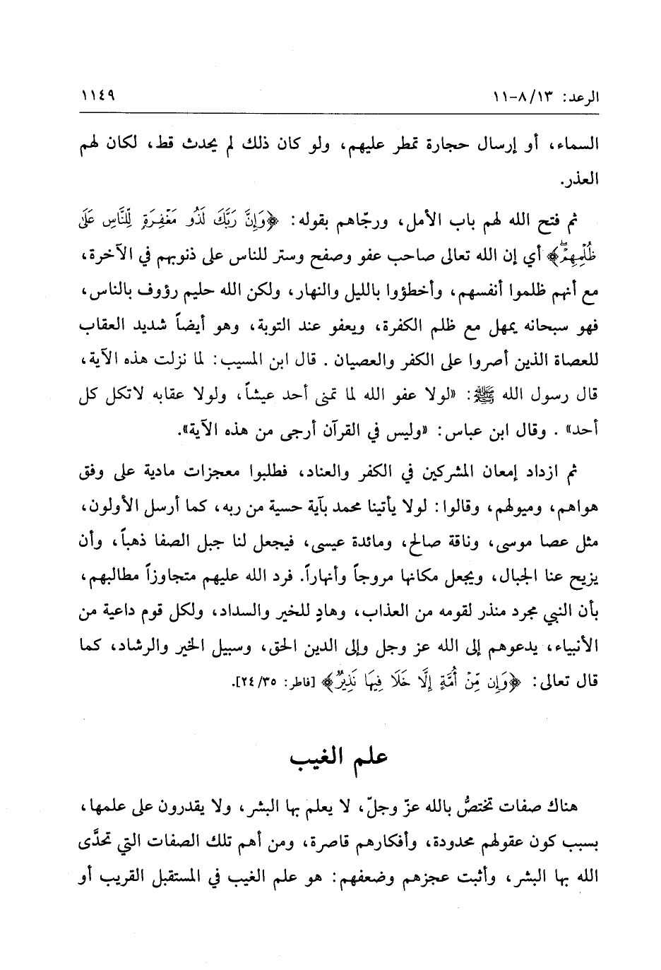 ث م ازداد إمعان المشركين في الكفر والعناد، فطلبوا معجزات مادية على وفق هواهم، وميولهم، وقالوا: لولا يأتينا محمد بآية حسية من ربه، كما أرسل الأولون، مثل عصا موسى، وناقة صالح، ومائدة عيسى، فيجعل لنا جبل الصفا ذهبا، وأن يزيح عنا الجبال، ويجعل مكانها مروجا وأنهارا. فرد الله عليهم متجاوزا مطالبهم، بأن النبي مجرد منذر لقومه من العذاب، وهاد للخير والسداد، ولكل قوم داعية من الأنبياء، يدعوهم إلى الله عز وجل وإلى الدين الحق، وسبيل الخير والرشاد، كما قال تعالى: وَإِنْ مِنْ أُمَّةٍ إِلَّا خَلا فِيها نَذِيرٌ [فاطر: 35/ 24] .