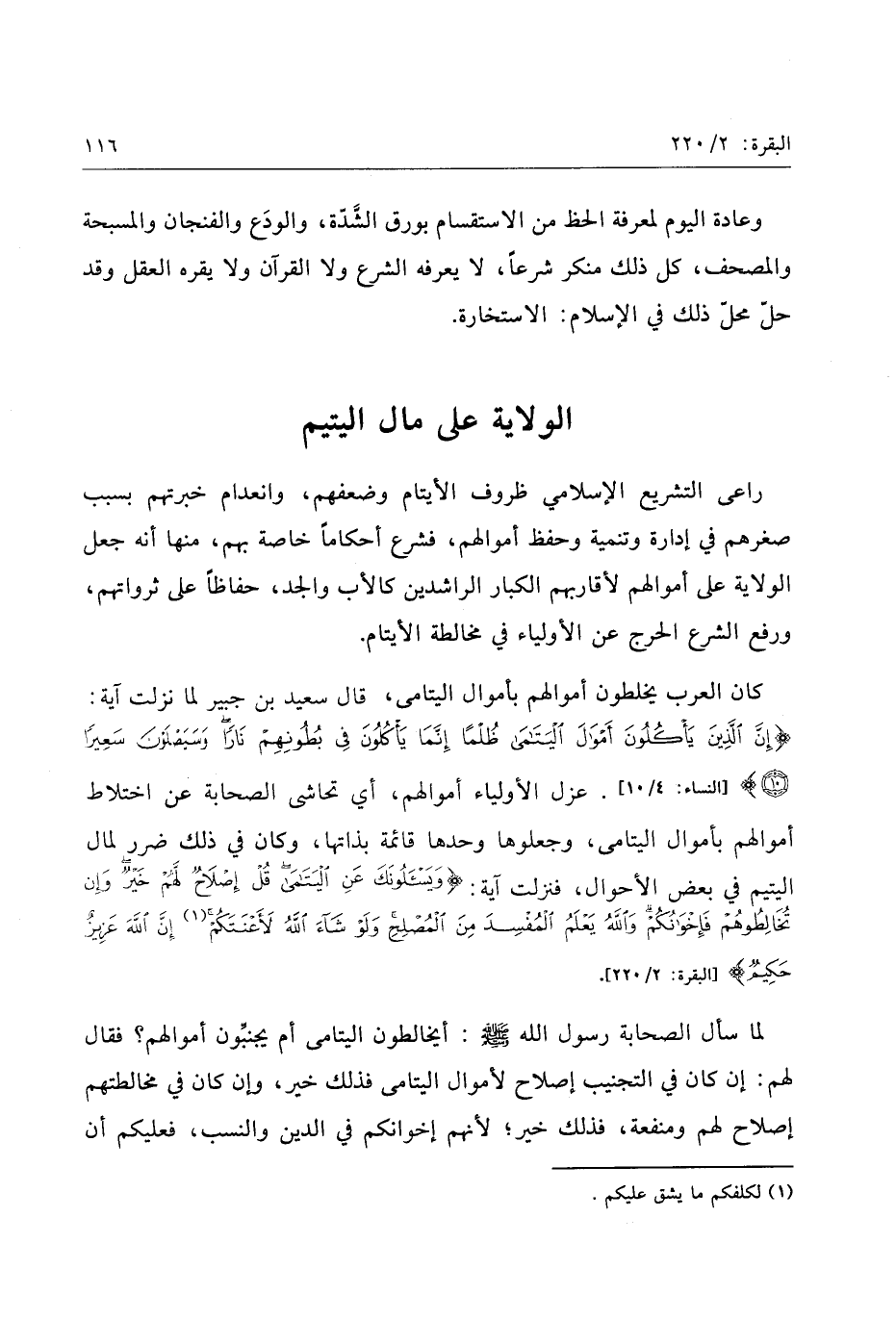 فِي الدُّنْيا وَالْآخِرَةِ وَيَسْئَلُونَكَ عَنِ الْيَتامى قُلْ إِصْلاحٌ لَهُمْ خَيْرٌ وَإِنْ تُخالِطُوهُمْ فَإِخْوانُكُمْ وَاللَّهُ يَعْلَمُ الْمُفْسِدَ مِنَ الْمُصْلِحِ وَلَوْ شاءَ اللَّهُ لَأَعْنَتَكُمْ إِنَّ اللَّهَ عَزِيزٌ حَكِيمٌ (220)