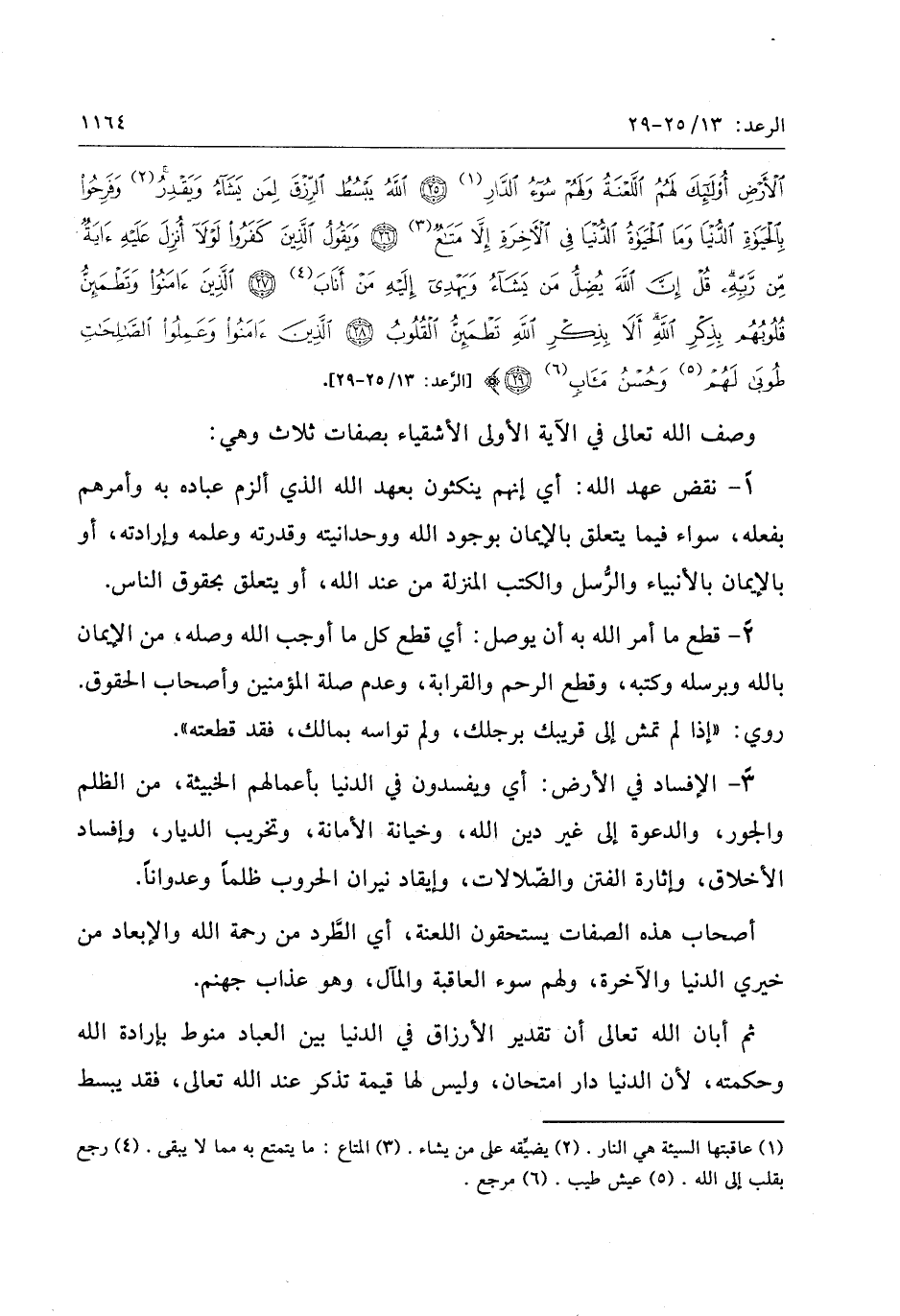 3- الإفساد في الأرض: أي ويفسدون في الدنيا بأعمالهم الخبيثة، من الظلم والجور، والدعوة إلى غير دين الله، وخيانة الأمانة، وتخريب الديار، وإفساد الأخلاق، وإثارة الفتن والضّلالات، وإيقاد نيران الحروب ظلما وعدوانا.