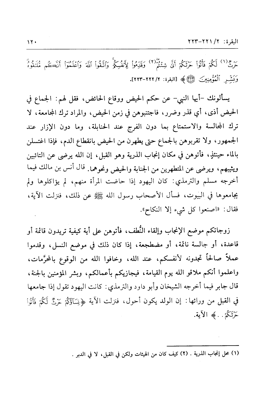 «1» «2» [البقرة: 2/ 222/ 223] .