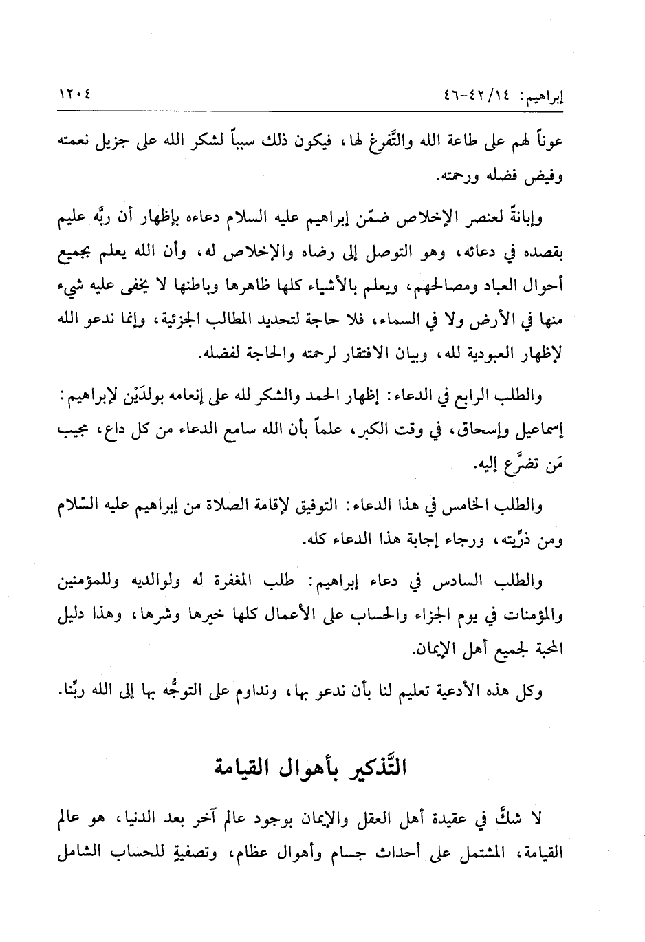 والطلب الخامس في هذا الدعاء: التوفيق لإقامة الصلاة من إبراهيم عليه السّلام ومن ذرّيته، ورجاء إجابة هذا الدعاء كله.