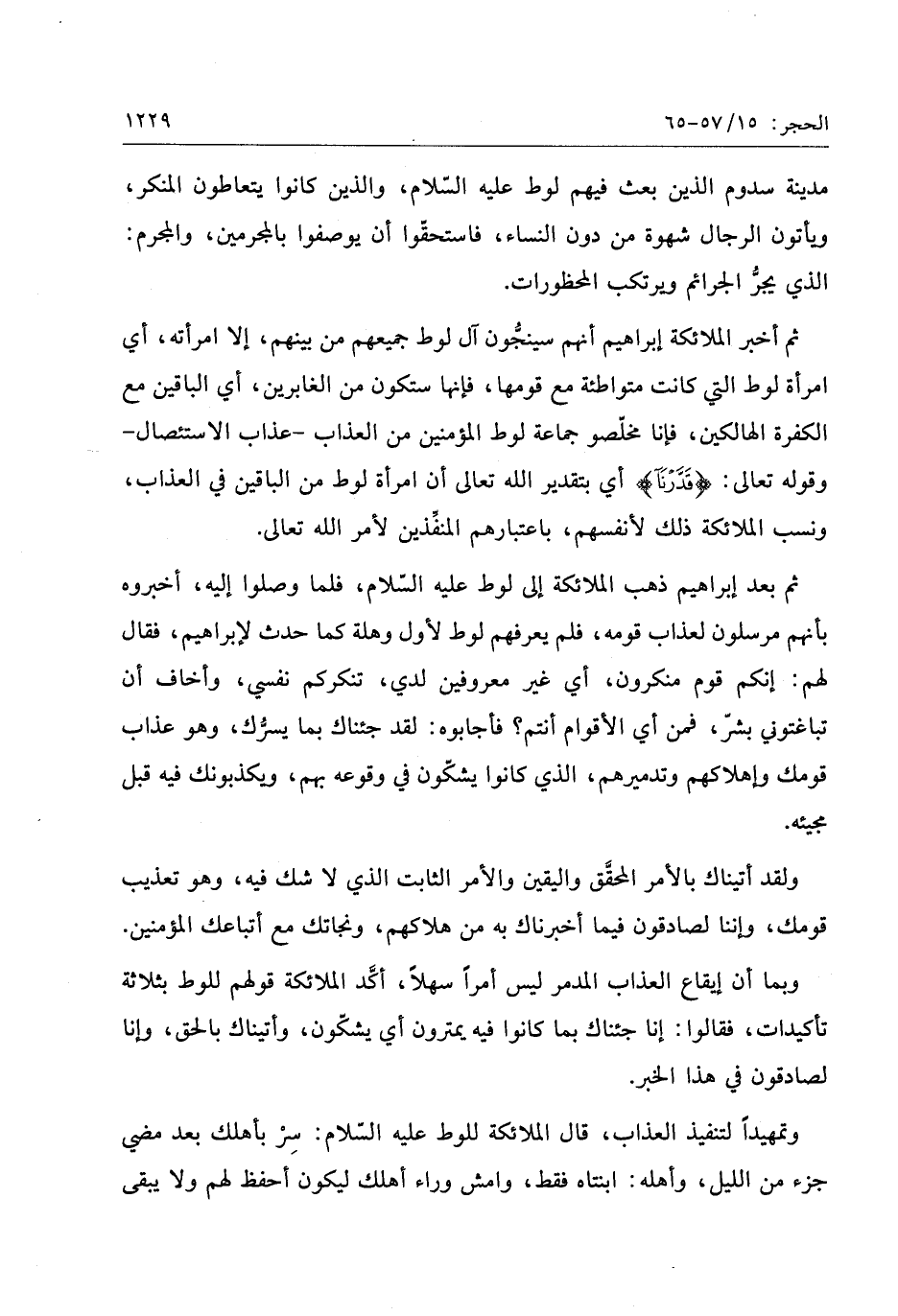 ثم بعد إبراهيم ذهب الملائكة إلى لوط عليه السّلام، فلما وصلوا إليه، أخبروه بأنهم مرسلون لعذاب قومه، فلم يعرفهم لوط لأول وهلة كما حدث لإبراهيم، فقال لهم: إنكم قوم منكرون، أي غير معروفين لدي، تنكركم نفسي، وأخاف أن تباغتوني بشرّ، فمن أي الأقوام أنتم؟ فأجابوه: لقد جئناك بما يسرّك، وهو عذاب قومك وإهلاكهم وتدميرهم، الذي كانوا يشكّون في وقوعه بهم، ويكذبونك فيه قبل مجيئه.