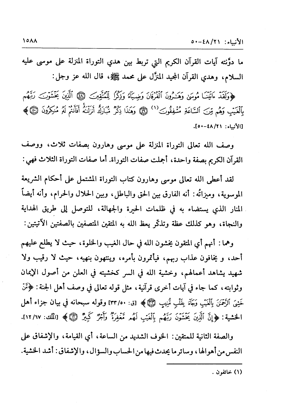 «1» [الأنبياء: 21/ 48- 50] .
