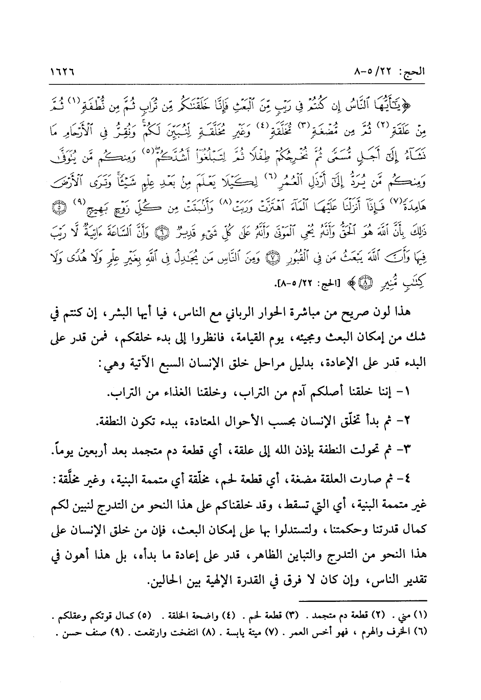 «1» «2» «3» «4» «5» «6» «7» «8» «9» [الحج: 22/ 5- 8] .