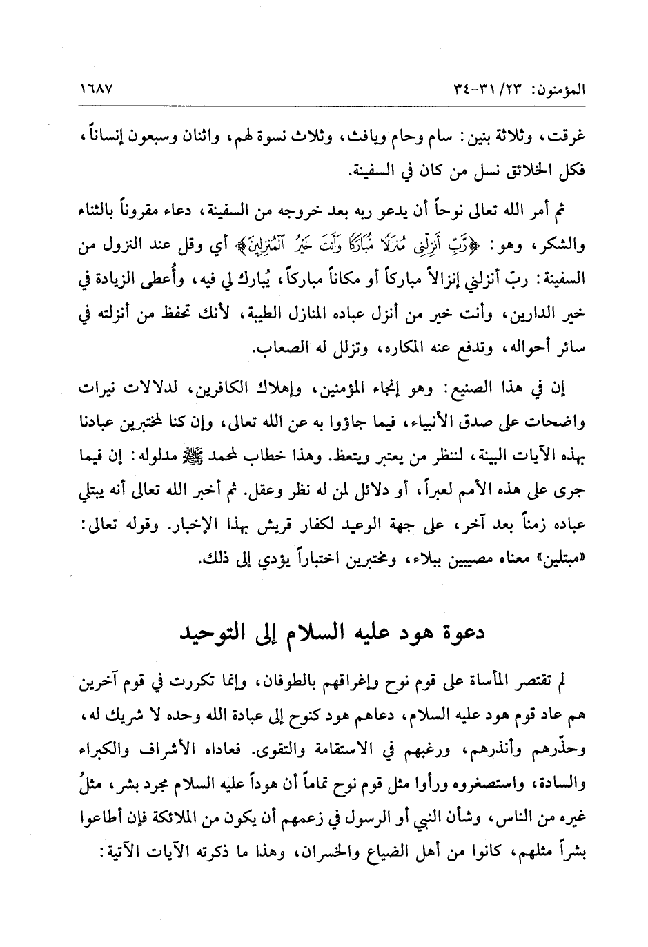 ثم أمر الله تعالى نوحا أن يدعو ربه بعد خروجه من السفينة، دعاء مقرونا بالثناء والشكر، وهو: رَبِّ أَنْزِلْنِي مُنْزَلًا مُبارَكاً وَأَنْتَ خَيْرُ الْمُنْزِلِينَ أي وقل عند النزول من السفينة: ربّ أنزلني إنزالا مباركا أو مكانا مباركا، يبارك لي فيه، وأعطى الزيادة في خير الدارين، وأنت خير من أنزل عباده المنازل الطيبة، لأنك تحفظ من أنزلته في سائر أحواله، وتدفع عنه المكاره، وتزلل له الصعاب.