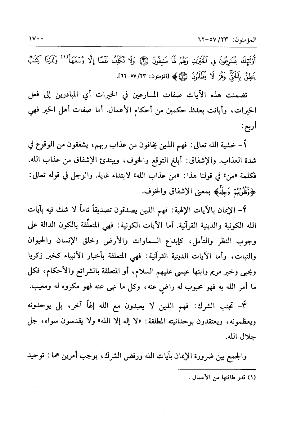 «1» [المؤمنون: 23/ 57- 62] .