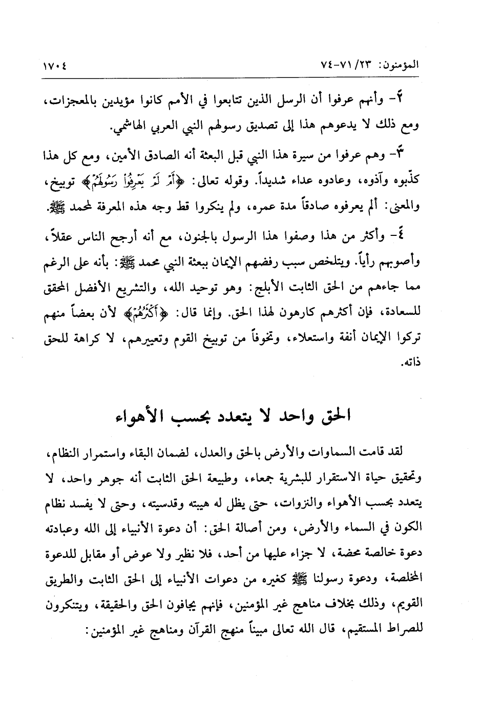 الحق واحد لا يتعدد بحسب الأهواء