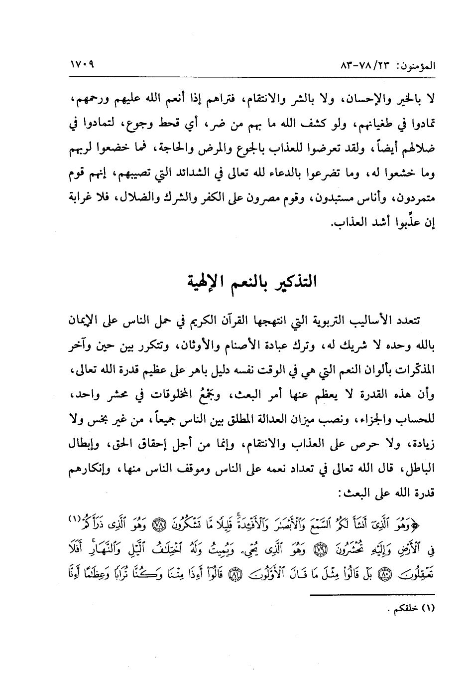 وَهُوَ الَّذِي أَنْشَأَ لَكُمُ السَّمْعَ وَالْأَبْصارَ وَالْأَفْئِدَةَ قَلِيلاً ما تَشْكُرُونَ (78) وَهُوَ الَّذِي ذَرَأَكُمْ فِي الْأَرْضِ وَإِلَيْهِ تُحْشَرُونَ (79) وَهُوَ الَّذِي يُحْيِي وَيُمِيتُ وَلَهُ اخْتِلافُ اللَّيْلِ وَالنَّهارِ أَفَلا تَعْقِلُونَ (80) بَلْ قالُوا مِثْلَ ما قالَ الْأَوَّلُونَ (81) قالُوا أَإِذا مِتْنا وَكُنَّا تُراباً وَعِظاماً أَإِنَّا لَمَبْعُوثُونَ (82)