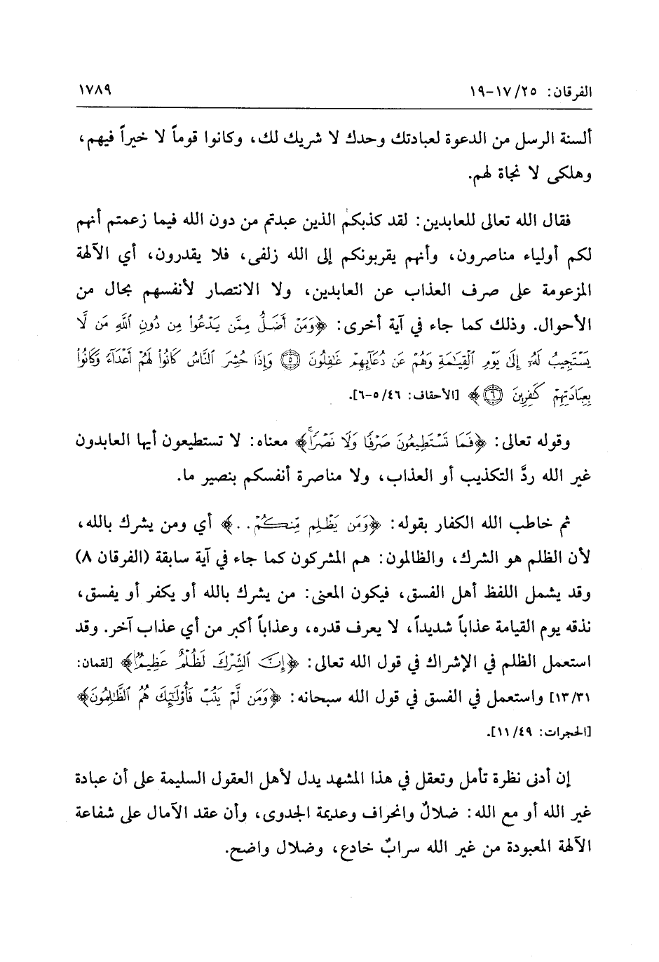 ثم خاطب الله الكفار بقوله: وَمَنْ يَظْلِمْ مِنْكُمْ.. أي ومن يشرك بالله، لأن الظلم هو الشرك، والظالمون: هم المشركون كما جاء في آية سابقة (الفرقان 8) وقد يشمل اللفظ أهل الفسق، فيكون المعنى: من يشرك بالله أو يكفر أو يفسق، نذقه يوم القيامة عذابا شديدا، لا يعرف قدره، وعذابا أكبر من أي عذاب آخر. وقد استعمل الظلم في الإشراك في قول الله تعالى: إِنَّ الشِّرْكَ لَظُلْمٌ عَظِيمٌ [لقمان: