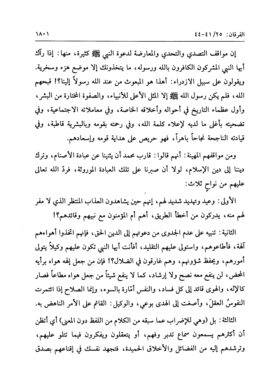 ويقولون على سبيل الازدراء: أهذا هو المبعوث من عند الله رسولا إلينا؟! قبحهم الله، فلم يكن رسول الله صلّى الله عليه وسلّم إلا المثل الأعلى للأنبياء، والصفوة المختارة من البشر، وأول عظماء التاريخ في أحواله وأخلاقه الخاصة، وفي معاملاته الاجتماعية، وفي تضحيته بأغلى ما لديه لإعلاء كلمة الله، وفي رحمته بقومه وبالبشرية قاطبة، وفي قيادته الناجحة نجاحا باهرا، فهو حريص على هداية قومه وإسعادهم.