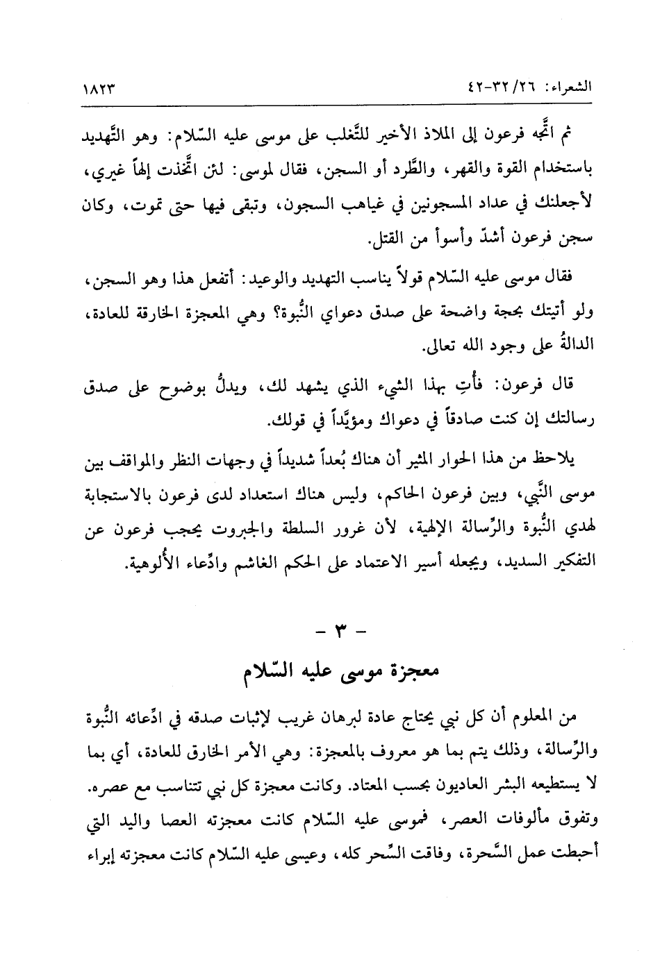 يلاحظ من هذا الحوار المثير أن هناك بعدا شديدا في وجهات النظر والمواقف بين موسى النّبي، وبين فرعون الحاكم، وليس هناك استعداد لدى فرعون بالاستجابة لهدي النّبوة والرّسالة الإلهية، لأن غرور السلطة والجبروت يحجب فرعون عن التفكير السديد، ويجعله أسير الاعتماد على الحكم الغاشم وادّعاء الألوهية.
