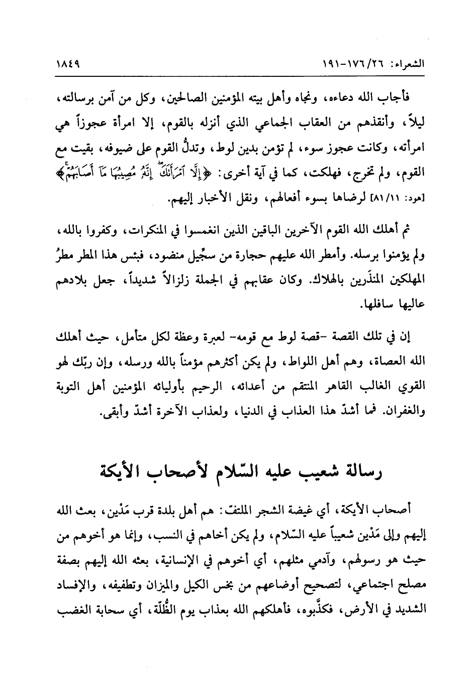 رسالة شعيب عليه السّلام لأصحاب الأيكة