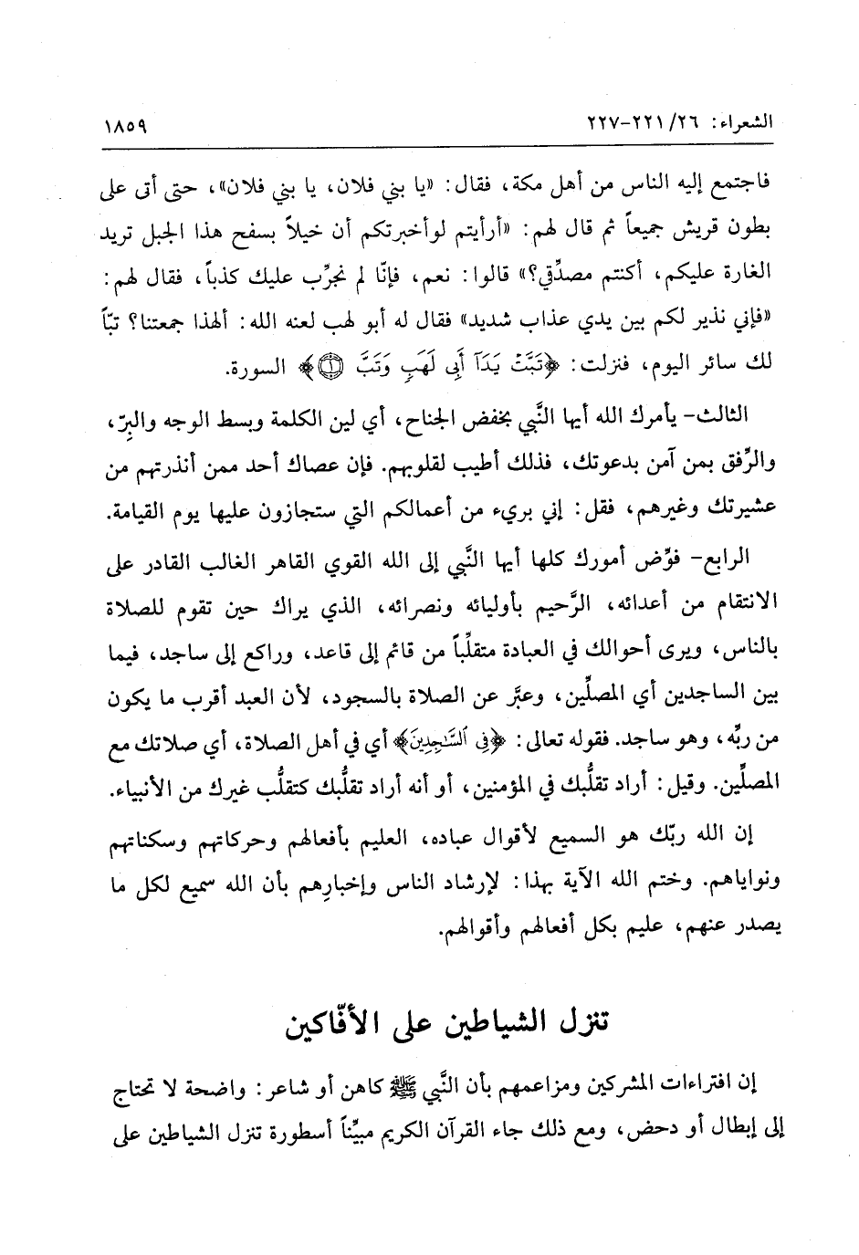 إن افتراءات المشركين ومزاعمهم بأن النّبي صلّى الله عليه وسلّم كاهن أو شاعر: واضحة لا تحتاج إلى إبطال أو دحض، ومع ذلك جاء القرآن الكريم مبيّنا أسطورة تنزل الشياطين على