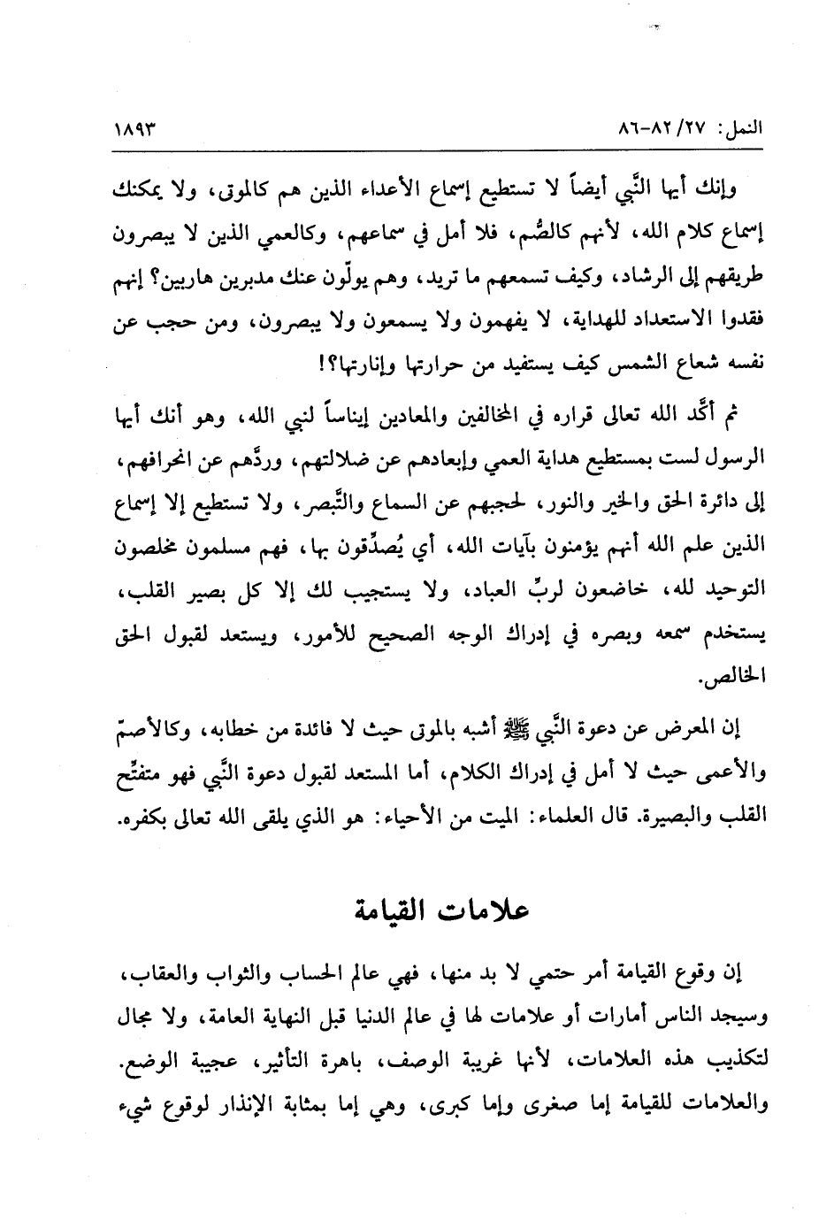 إن وقوع القيامة أمر حتمي لا بد منها، فهي عالم الحساب والثواب والعقاب، وسيجد الناس أمارات أو علامات لها في عالم الدنيا قبل النهاية العامة، ولا مجال لتكذيب هذه العلامات، لأنها غريبة الوصف، باهرة التأثير، عجيبة الوضع.