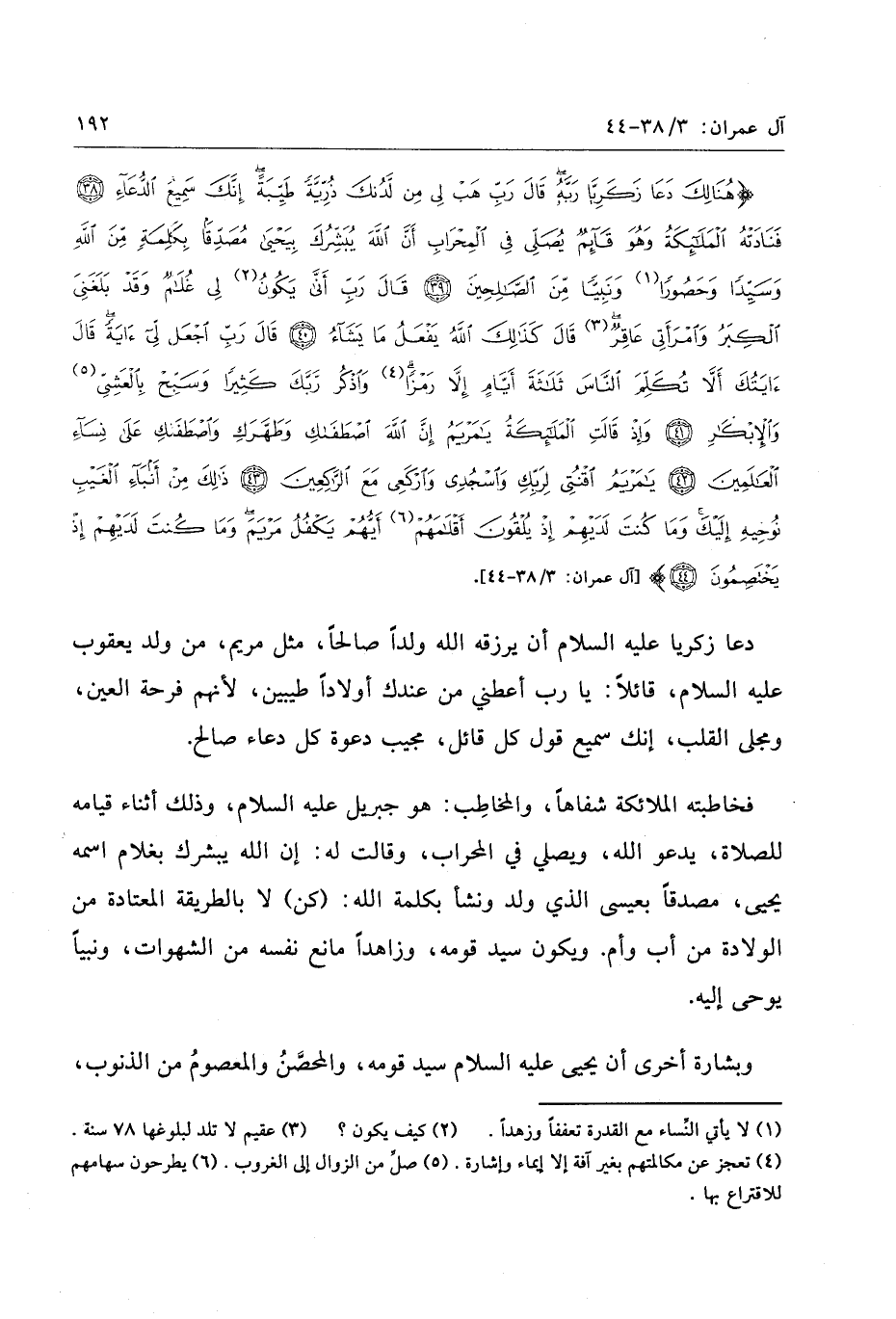 «1» «2» «3» «4» «5» «6» [آل عمران: 3/ 38- 44] .