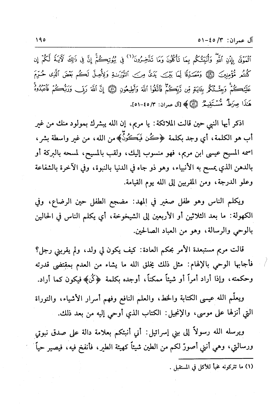 ويعلّم الله عيسى الكتابة والخط، والعلم النافع وفهم أسرار الأشياء، والتوراة التي أنزلها على موسى، والإنجيل: الكتاب الذي أوحي إليه من بعد ذلك.