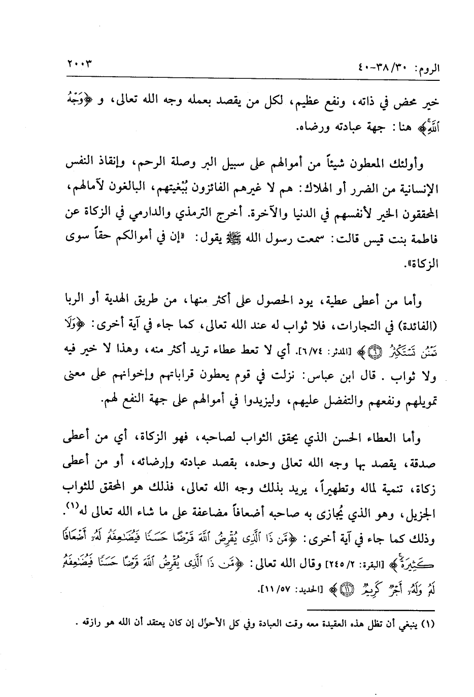 وأما من أعطى عطية، يود الحصول على أكثر منها، من طريق الهدية أو الربا (الفائدة) في التجارات، فلا ثواب له عند الله تعالى، كما جاء في آية أخرى: وَلا تَمْنُنْ تَسْتَكْثِرُ (6) [المدثر: 74/ 6] . أي لا تعط عطاء تريد أكثر منه، وهذا لا خير فيه ولا ثواب. قال ابن عباس: نزلت في قوم يعطون قراباتهم وإخوانهم على معنى تمويلهم ونفعهم والتفضل عليهم، وليزيدوا في أموالهم على جهة النفع لهم.