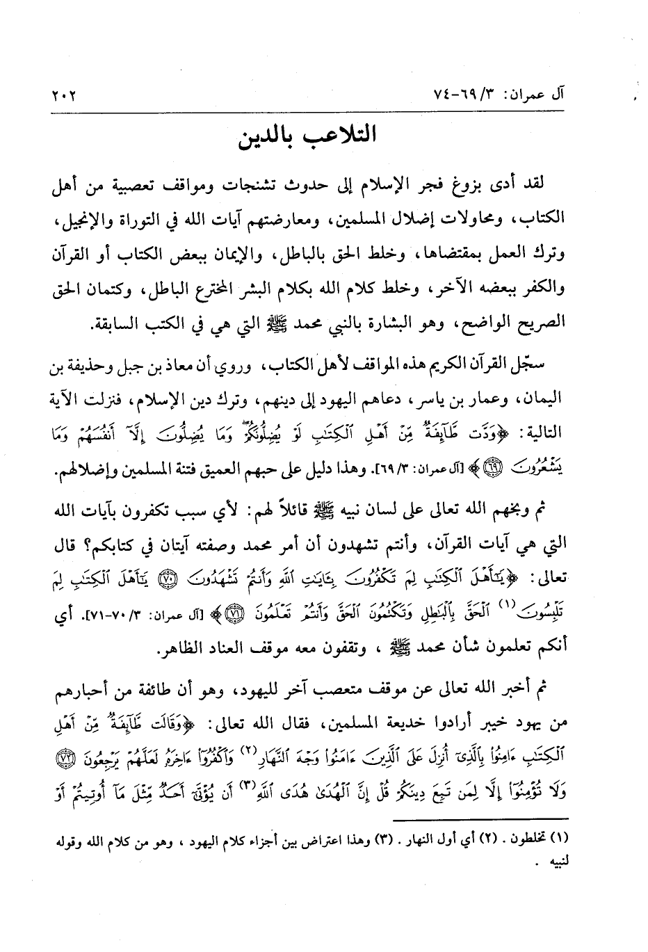 لقد أدى بزوغ فجر الإسلام إلى حدوث تشنجات ومواقف تعصبية من أهل الكتاب، ومحاولات إضلال المسلمين، ومعارضتهم آيات الله في التوراة والإنجيل، وترك العمل بمقتضاها، وخلط الحق بالباطل، والإيمان ببعض الكتاب أو القرآن والكفر ببعضه الآخر، وخلط كلام الله بكلام البشر المخترع الباطل، وكتمان الحق الصريح الواضح، وهو البشارة بالنبي محمد صلّى الله عليه وسلّم التي هي في الكتب السابقة.