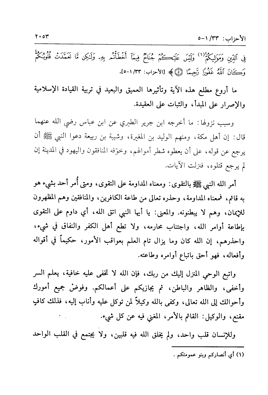 «1» [الأحزاب: 33/ 1- 5] .
