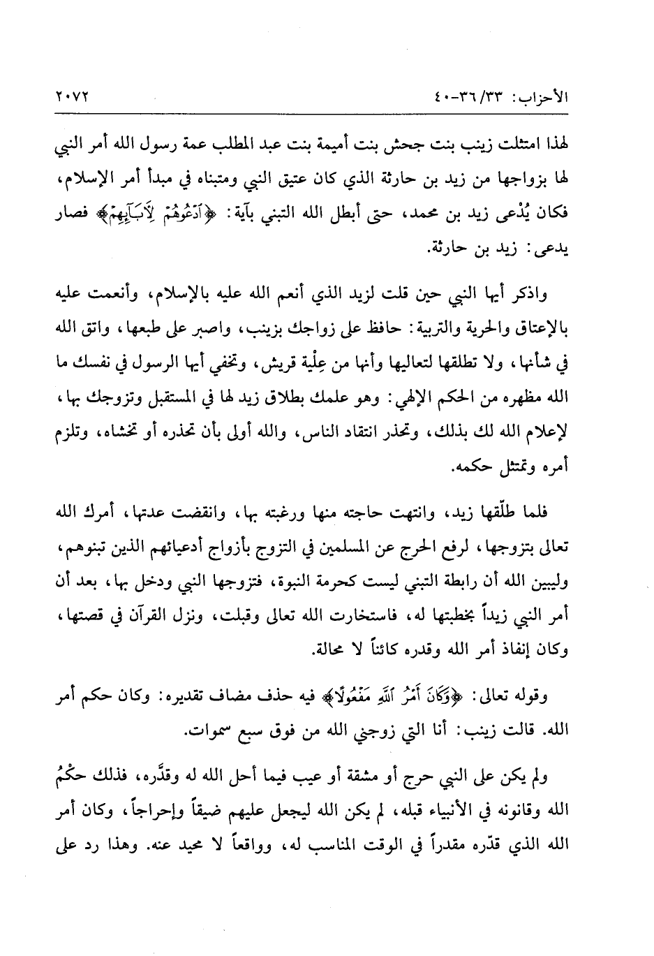 وقوله تعالى: وَكانَ أَمْرُ اللَّهِ مَفْعُولًا فيه حذف مضاف تقديره: وكان حكم أمر الله. قالت زينب: أنا التي زوجني الله من فوق سبع سموات.