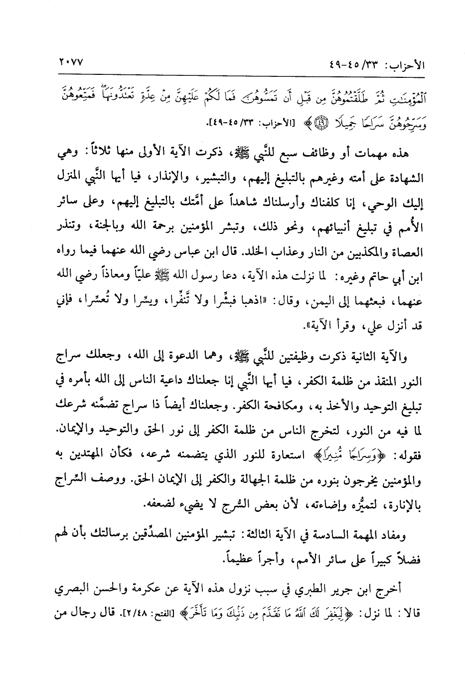 [الأحزاب: 33/ 45- 49] .