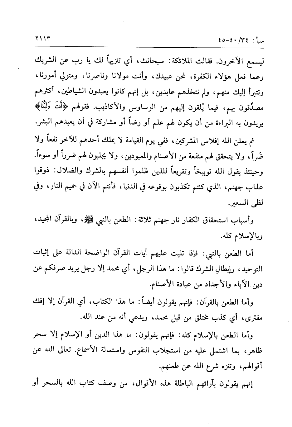 وأسباب استحقاق الكفار نار جهنم ثلاثة: الطعن بالنبي صلّى الله عليه وسلم، وبالقرآن المجيد، وبالإسلام كله.