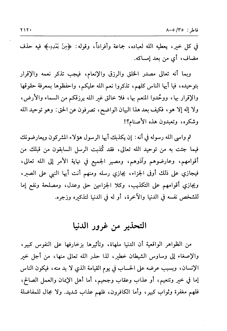 وبما أنه تعالى مصدر الخلق والرزق والإنعام، فيجب تذكر نعمه والإقرار بتوحيده، فيا أيها الناس كلهم، تذكروا نعم الله عليكم، واحفظوها بمعرفة حقوقها والإقرار بها، ووحّدوا المنعم بها، فلا خالق غير الله يرزقكم من السماء والأرض، ولا إله إلا هو، فكيف بعد هذا البيان الواضح، تصرفون عن الحق: وهو توحيد الله وشكره، وتعبدون هذه الأصنام؟! ثم واسى الله رسوله في أنه: إن يكذبك أيها الرسول هؤلاء المشركون ويعارضونك فيما جئت به من توحيد الله تعالى، فقد كذبت الرسل السابقون من قبلك من أقوامهم، وعارضوهم وآذوهم، ومصير الجميع في نهاية الأمر إلى الله تعالى، فيجازي على ذلك أو في الجزاء، يجازي رسله ومنهم أنت أيها النبي على الصبر، ويجازي أقوامهم على التكذيب، وكلا الجزاءين حق وعدل، ومصلحة ونفع إما للشخص نفسه في الدنيا والآخرة، أو له في الدنيا لتذكيره وزجره.