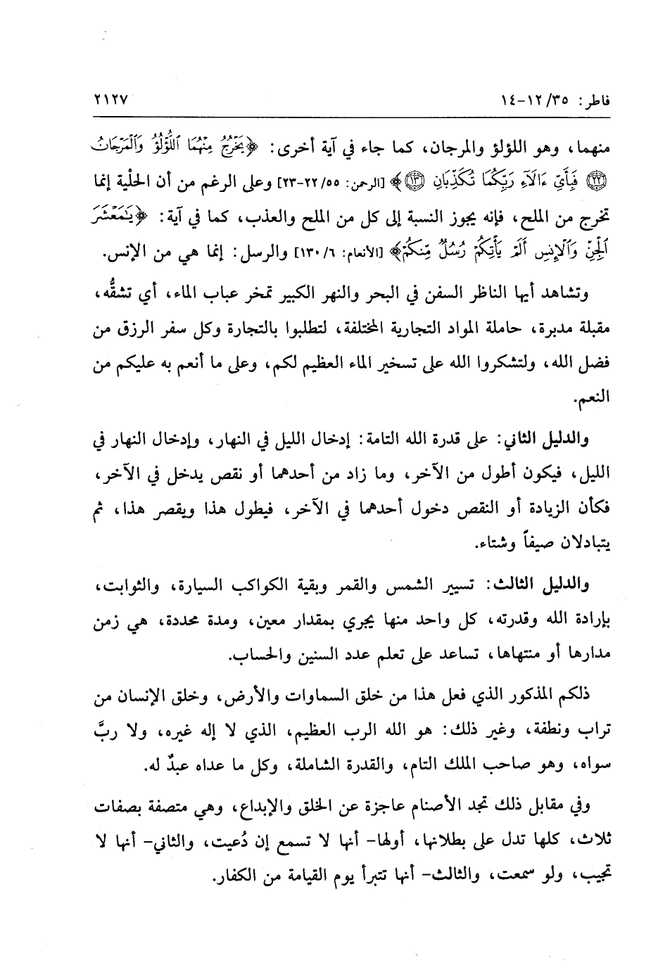 والدليل الثالث: تسيير الشمس والقمر وبقية الكواكب السيارة، والثوابت، بإرادة الله وقدرته، كل واحد منها يجري بمقدار معين، ومدة محددة، هي زمن مدارها أو منتهاها، تساعد على تعلم عدد السنين والحساب.