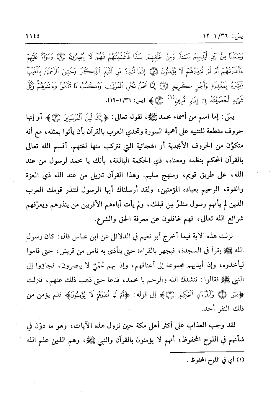 «1» [يس: 36/ 1- 12] .
