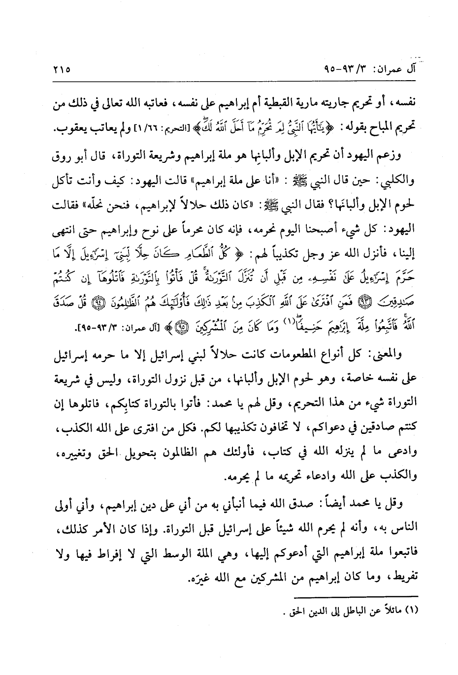 «1» [آل عمران: 3/ 93- 95] .