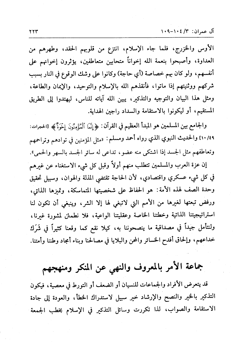 والجامع بين المسلمين هو المبدأ العظيم في القرآن: إِنَّمَا الْمُؤْمِنُونَ إِخْوَةٌ [الحجرات: