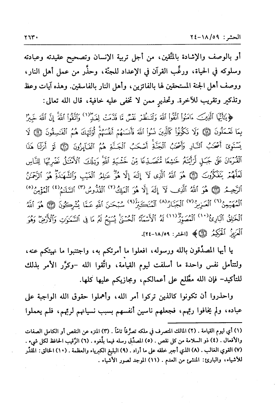 «1» «2» «3» «4» «5» «6» «7» «8» «9» «10» «11» [الحشر: 59/ 18- 24] .