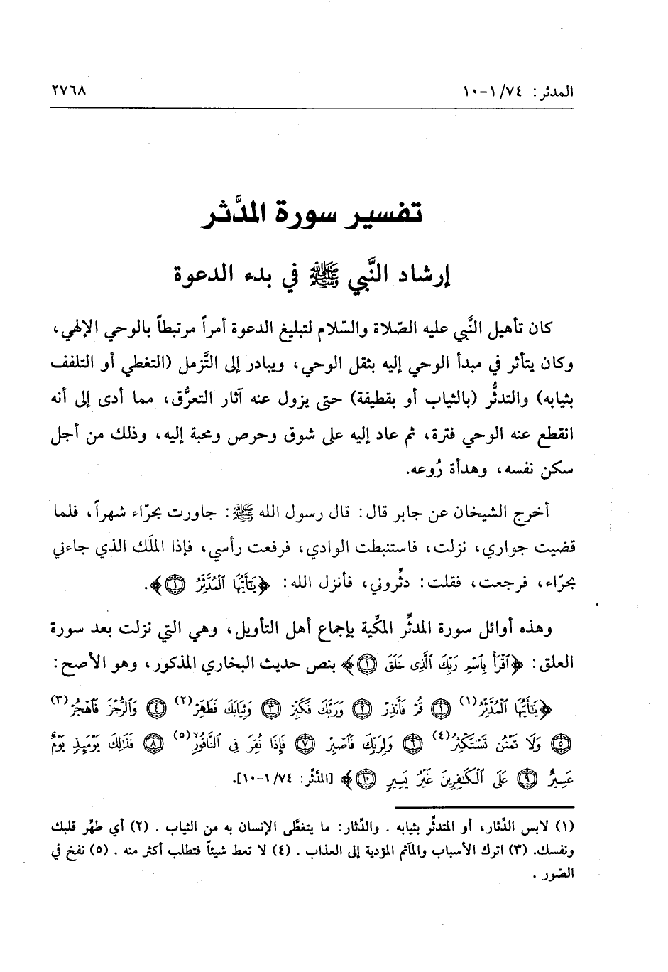 وهذه أوائل سورة المدثّر المكّية بإجماع أهل التأويل، وهي التي نزلت بعد سورة العلق: اقْرَأْ بِاسْمِ رَبِّكَ الَّذِي خَلَقَ (1) بنص حديث البخاري المذكور، وهو الأصح:
