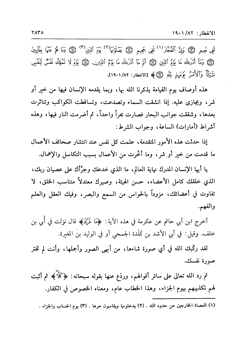 «1» «2» «3» [الانفطار: 82/ 1- 19] .