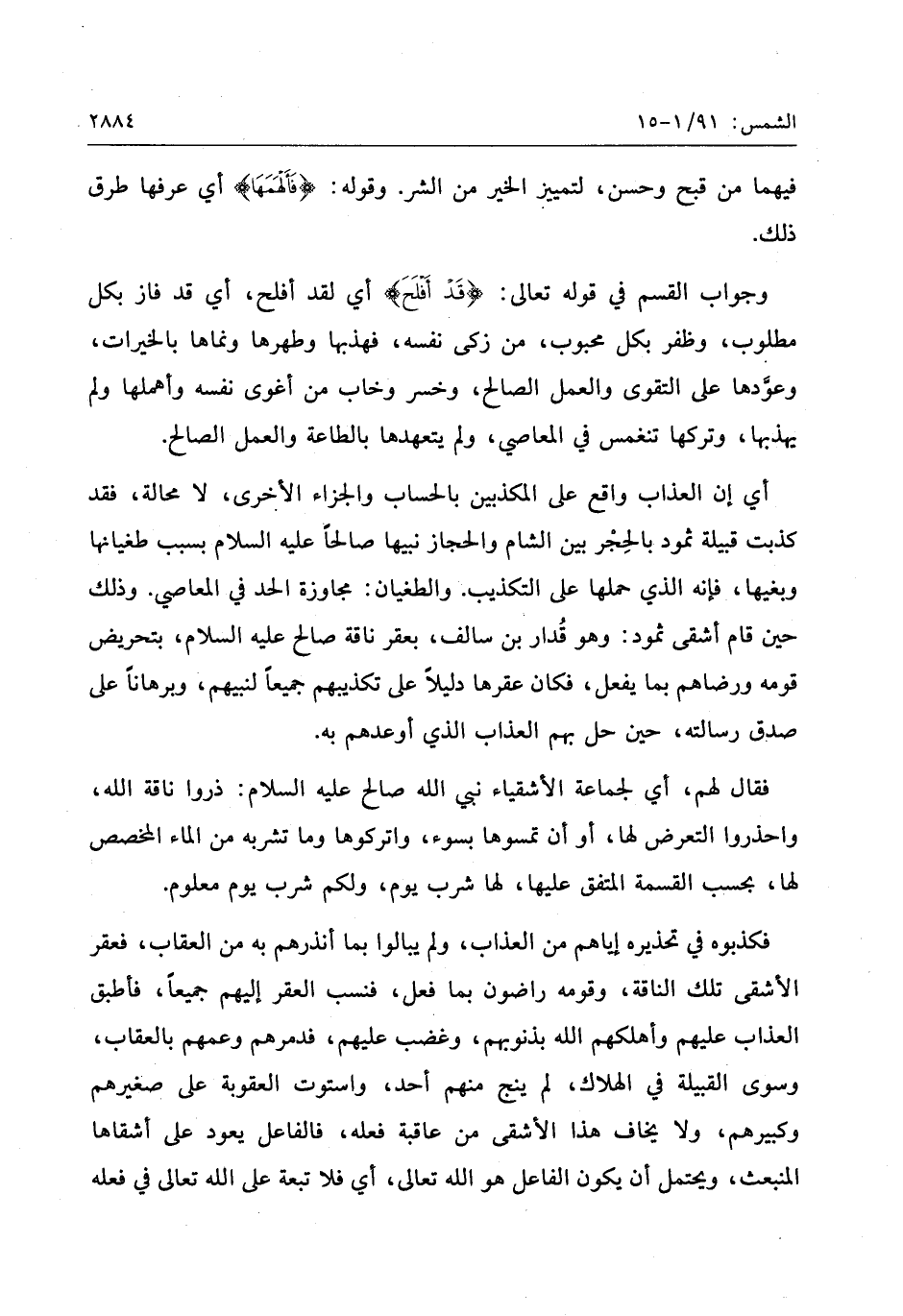 وجواب القسم في قوله تعالى: قَدْ أَفْلَحَ أي لقد أفلح، أي قد فاز بكل مطلوب، وظفر بكل محبوب، من زكى نفسه، فهذبها وطهرها ونماها بالخيرات، وعوّدها على التقوى والعمل الصالح، وخسر وخاب من أغوى نفسه وأهملها ولم يهذبها، وتركها تنغمس في المعاصي، ولم يتعهدها بالطاعة والعمل الصالح.