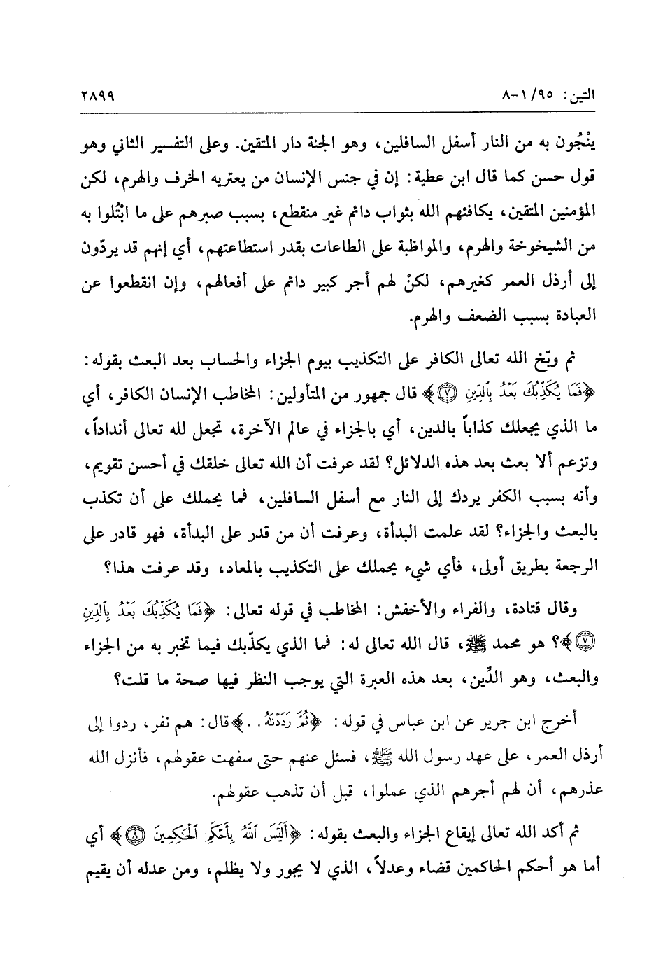 ثم أكد الله تعالى إيقاع الجزاء والبعث بقوله: أَلَيْسَ اللَّهُ بِأَحْكَمِ الْحاكِمِينَ (8) أي أما هو أحكم الحاكمين قضاء وعدلا، الذي لا يجور ولا يظلم، ومن عدله أن يقيم